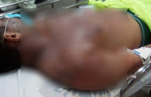A mãe da vítima, Ana Cláudia, que está acompanhando o filho no hospital, informou que a água atingiu a boca, a língua e toda região dos peitos e virilhas do do seu filho. Ele vai passar inicialmente por pelo menos duas cirurgias.
