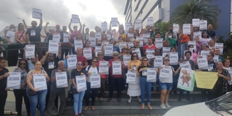 MANAUS-AM| Na manhã desta quarta-feira (17), professores da Secretaria de Estado de Educação e Desporto (Seduc), realizam uma manifestação na frente da Assembleia Legislativa do Amazonas (Aleam), com objetivo de reivindicar reajuste salarial de 25% das datas bases de 2022 e 2023 que incluem retroativo de 2020 e 2021.