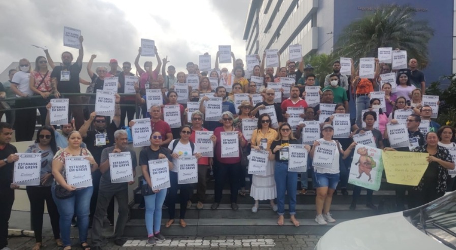 MANAUS-AM| Na manhã desta quarta-feira (17), professores da Secretaria de Estado de Educação e Desporto (Seduc), realizam uma manifestação na frente da Assembleia Legislativa do Amazonas (Aleam), com objetivo de reivindicar reajuste salarial de 25% das datas bases de 2022 e 2023 que incluem retroativo de 2020 e 2021.