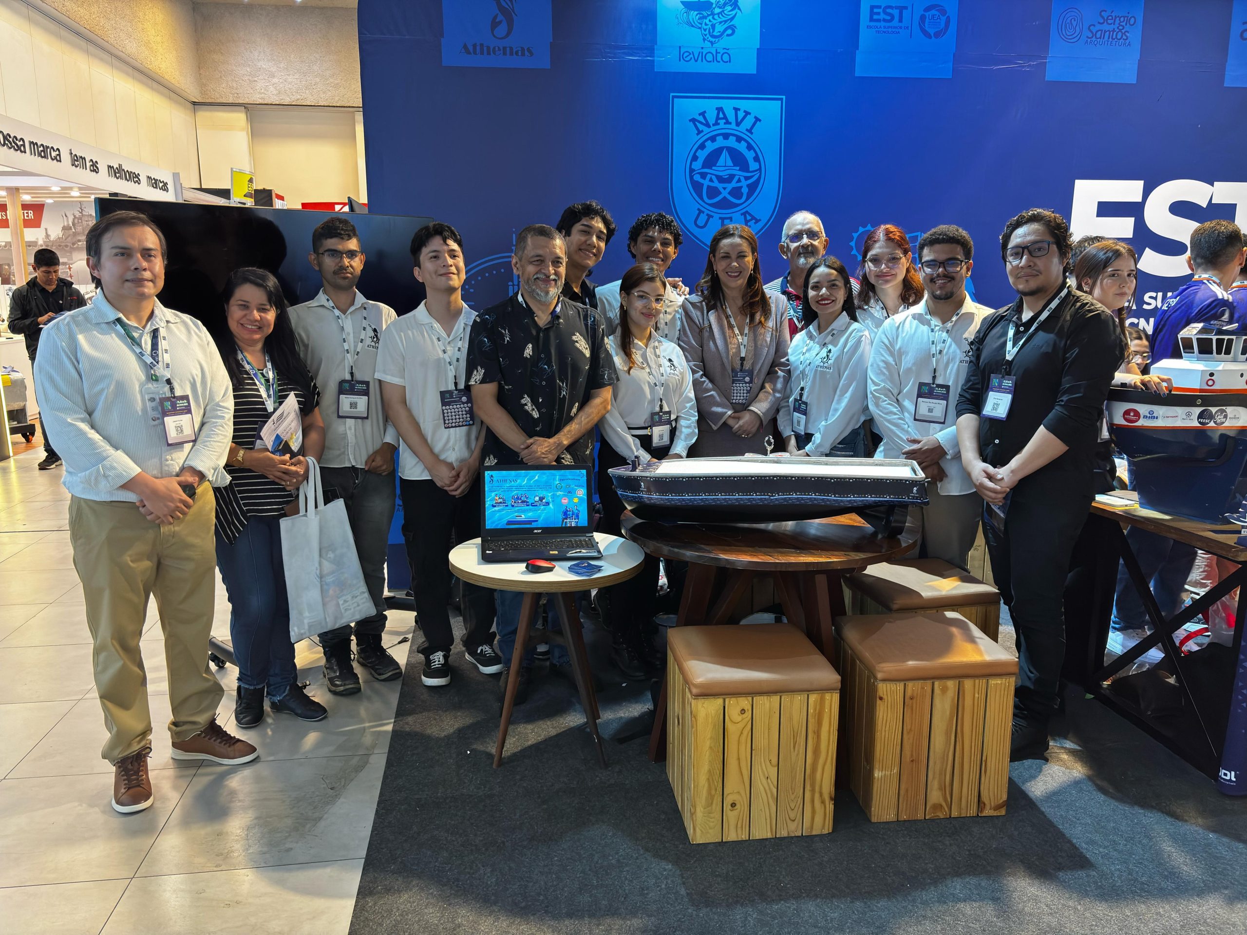 No stand da UEA, o público pode conhecer de perto o trabalho das equipes de nautimodelismo Athenas, Navi e Jaraqui, além do Leviatã, um barco movido à energia solar. Os projetos são desenvolvidos por estudantes, com apoio de professores e parceiros, e representam iniciativas voltadas à inovação, sustentabilidade e aplicação prática dos conhecimentos adquiridos em sala de aula.