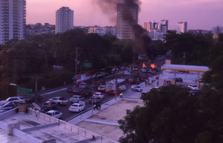 Manaus – Uma manifestação bloqueava todas as pistas da Avenida Umberto Calderaro, na Zona Centro Sul de Manaus, por volta das 18h20 deste terça-feira (02).
