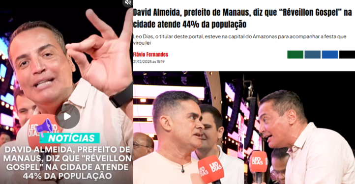 Nos dias 30 e 31, ele cobriu o Réveillon Gospel e a festa de virada do ano no Complexo Turístico da Ponta Negra. Com quase 20 milhões de seguidores no Instagram, Leo publicou vídeos e uma matéria em seu site com os títulos: “David Almeida, prefeito de Manaus, diz que Réveillon Gospel na cidade atende 44% da população” e “Shows, fogos e mais de 200 mil pessoas marcam o réveillon 2026 em Manaus”.