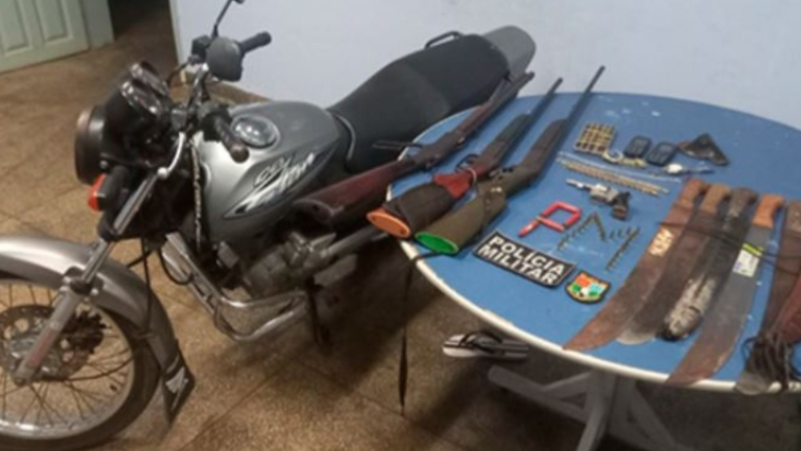 Com o grupo foi apreendido quatro armas de fogo, seis terçados, além de várias munições e uma motocicleta CG Titan de cor placa com restrição de roubo.