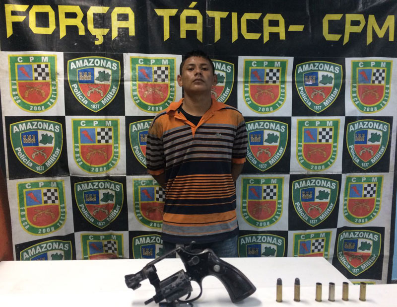 Manaus – Um homem, identificado como Jackson Rafael de Oliveira Fernandes, 20, foi preso por policiais militares da Força Tática no final da manhã desta segunda-feira (14). Segundo informações do soldado Coutinho, que atendeu a ocorrência, Jackson atirou em um outro homem na avenida Cosme Ferreira, no bairro São José, Zona Leste de Manaus.