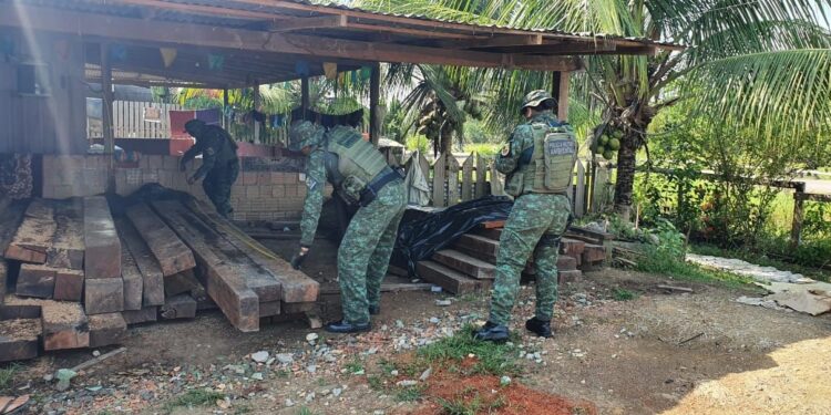 AUTAZES-AM | Polícia Militar do Amazonas (PMAM), por meio Batalhão de Policiamento Ambiental, na quinta-feira (19/08), por volta das 9h, efetuou a fiscalização ambiental em um depósito clandestino de madeira, na rodovia AM-254, no município de Autazes, durante a Operação Hórus.