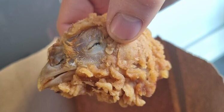 “Encontrei uma cabeça de frango frito na minha refeição quente de asa, coloque o resto fora, ugh”, disse em publicação nas redes sociais. Em resposta oficial, a conta do KFC no Twitter afirmou estar “chocada” e “surpresa” com o achado.