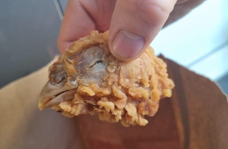 “Encontrei uma cabeça de frango frito na minha refeição quente de asa, coloque o resto fora, ugh”, disse em publicação nas redes sociais. Em resposta oficial, a conta do KFC no Twitter afirmou estar “chocada” e “surpresa” com o achado.