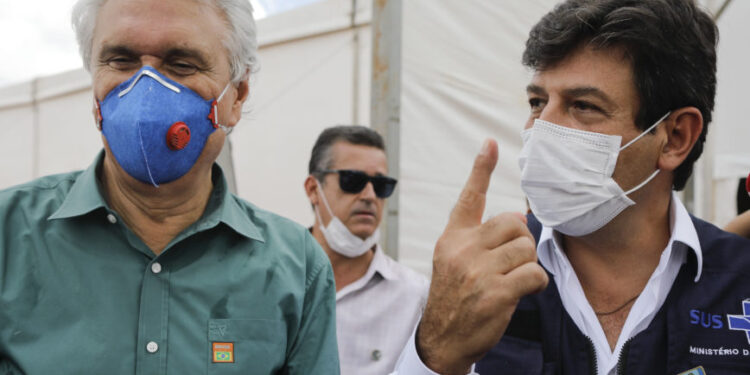 ÁGUAS LINDAS- GO| Neste sabado (11), a visita do presidente Jair Bolsonaro (sem partido) e do ministro da Saúde, Luiz Henrique Mandetta (DEM), ao Hospital de Campanha de Goiás, em Águas Lindas, chamou atenção de varias simpatizantes do Governo, que fizeram aglomerações no local. Diante da pergunta de alguns repórteres, sobre a aglomeração dos apoiadores, Mandetta disse: “Eu posso recomendar, não posso viver a vida dos outros. As pessoas que estão fazendo aglomerações daqui a pouco são as mesmas que vão estar se lamentando.”, afirmou