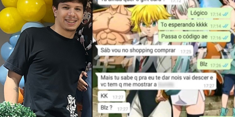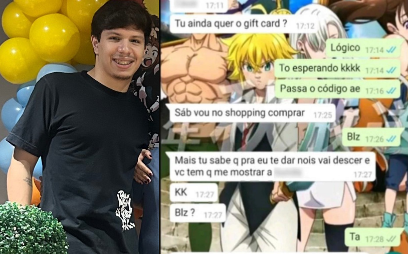 A vítima responde que sim e o suspeito diz que vai ao shopping comprar, mas avisa: “Mais (sic) tu sabe que pra eu te dar nois (sic) vai descer e você tem que me mostrar a p…”. Além de tocar nas partes íntimas, ele também pedia fotos em troca dos presentes.