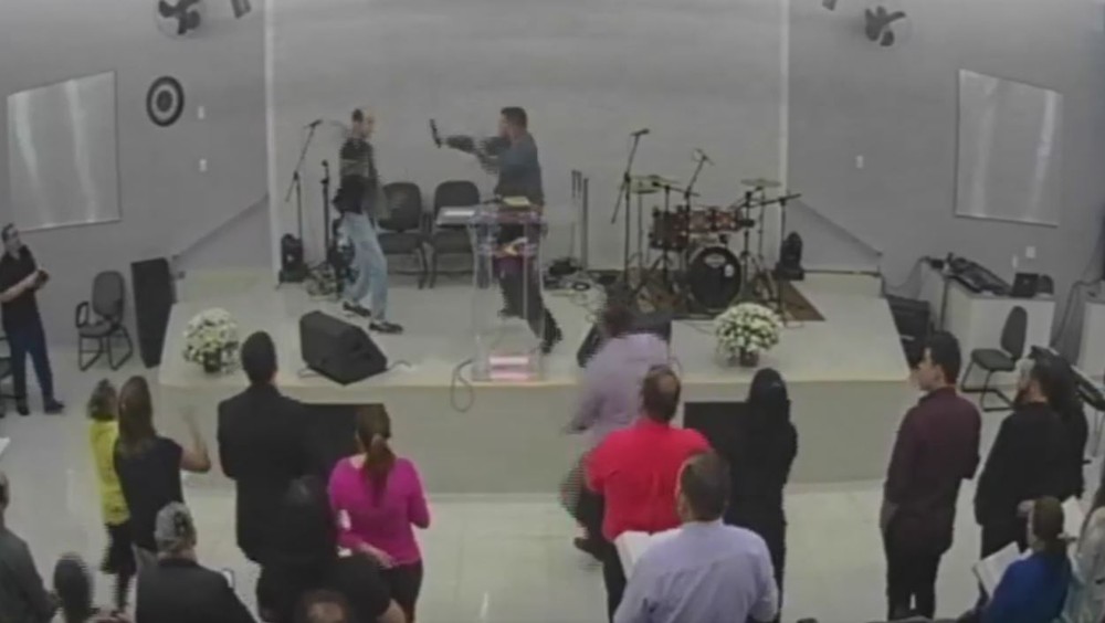 A Polícia Militar foi acionada e o homem foi levado à delegacia para prestar depoimentos. O caso foi visto ao vivo pela página da igreja, que fazia transmissão simultânea do culto.