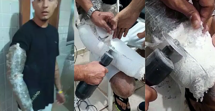 No entanto, Emiliano demonstrou nervosismo com a situação e logo os policiais perceberam que havia algo por baixo do gesso.