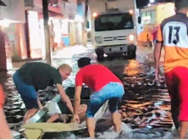 A cidade está inundada por conta da cheia do Rio Jari e estava andando na rua de casa quando foi atingido. Ele foi socorrido de canoa pelos próprios familiares e levado ao Hospital Estadual de Laranjal.