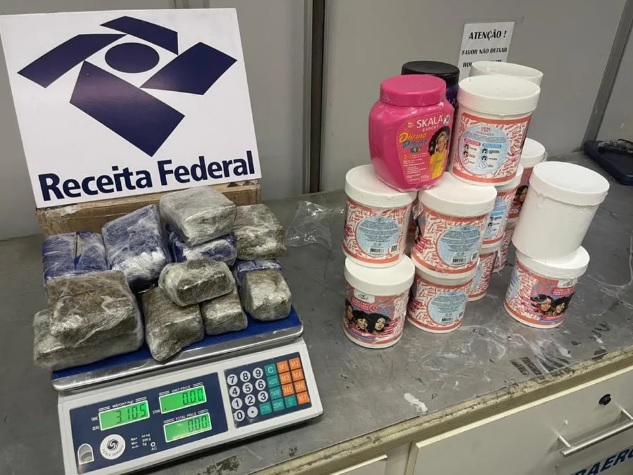 A carga era de potes de cosméticos que continham maconha. Foram encontrados 15 pacotes com o entorpecente, totalizando 3kg, que iriam para o Rio de Janeiro.