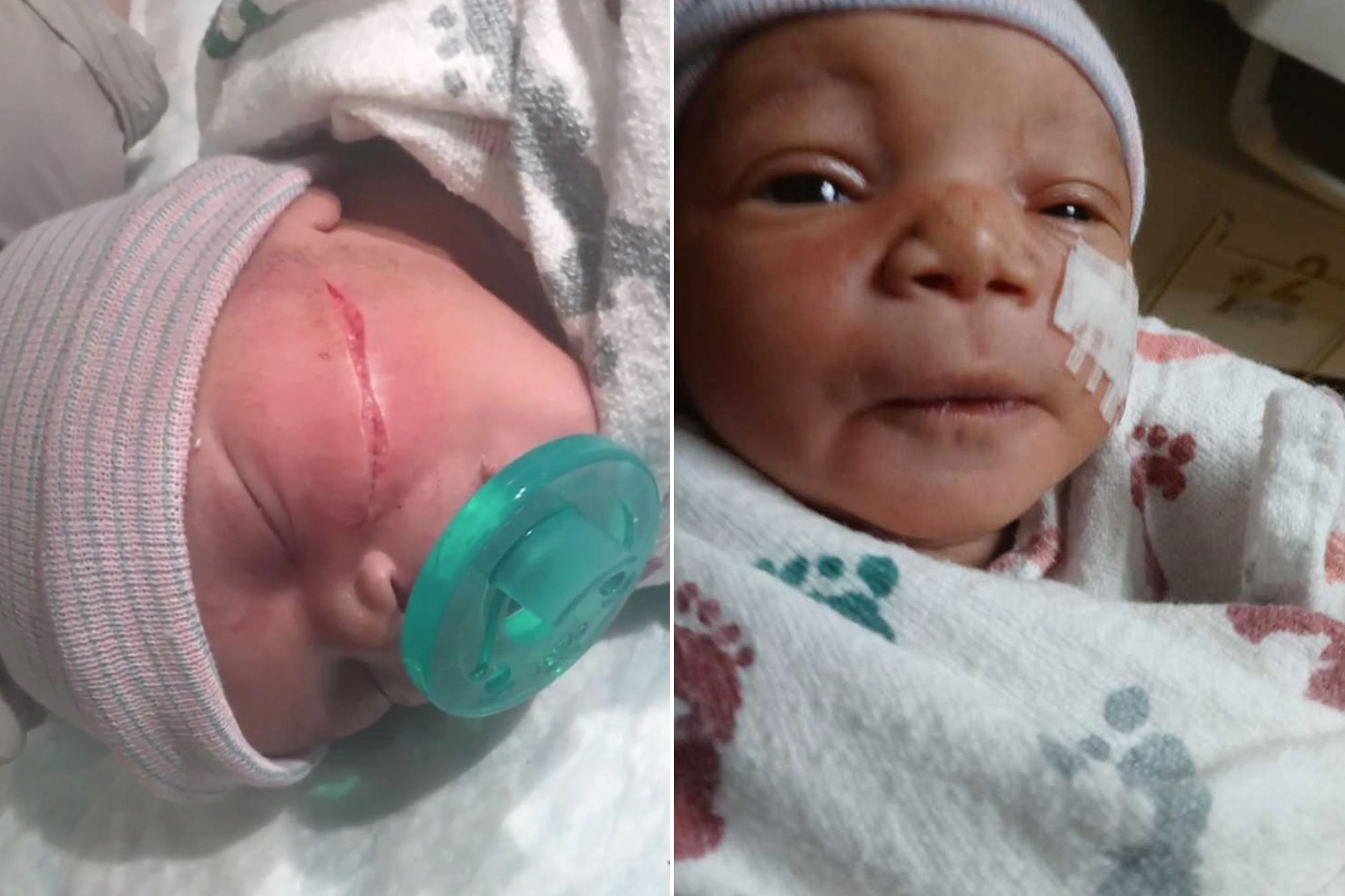 EUA | Um bebê recém-nascido nos Estados Unidos precisou de 13 pontos no rosto depois que uma cesariana de emergência a deixou com um enorme corte na bochecha.
