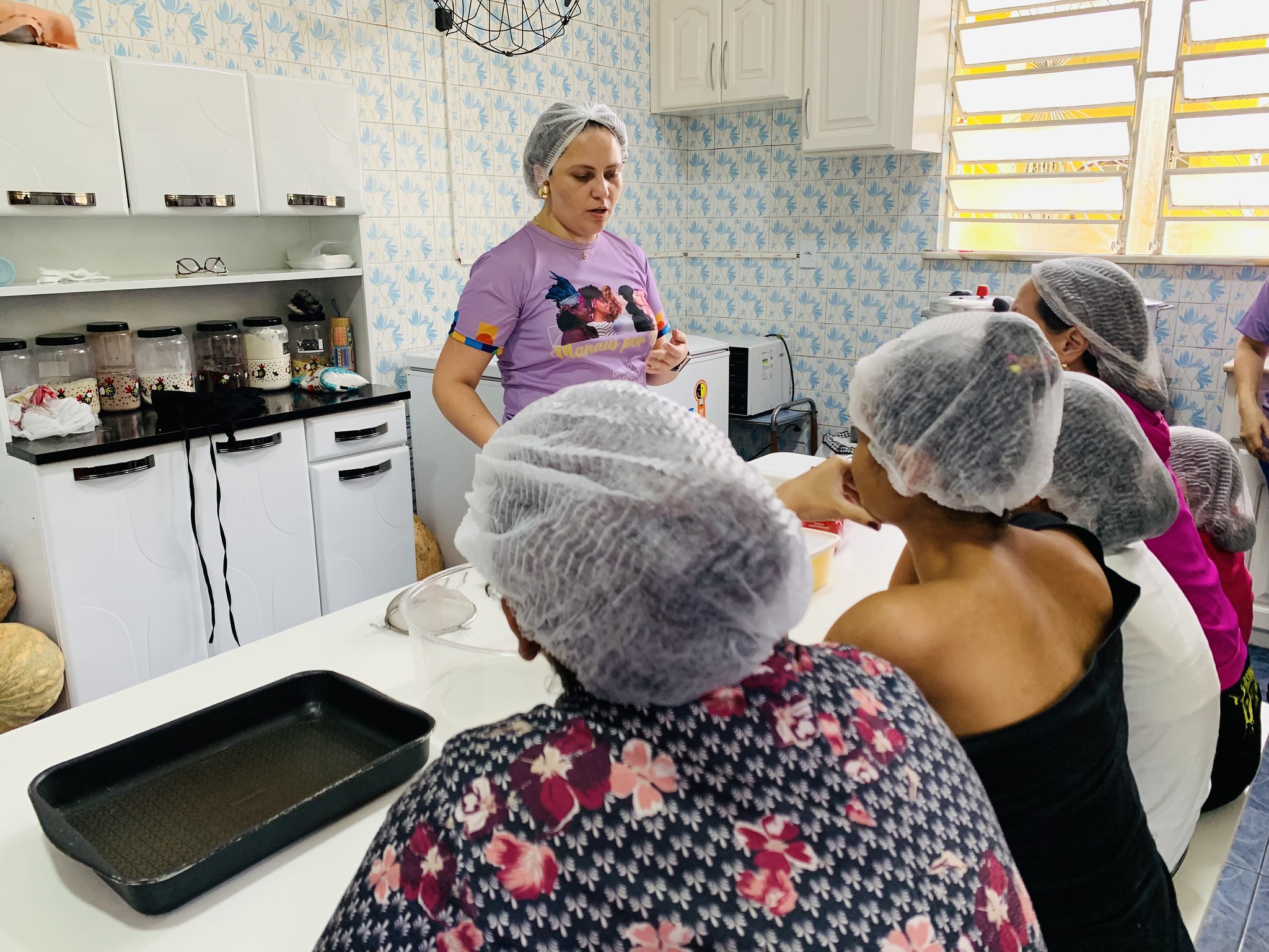 Manaus (AM) – Mulheres vítimas de violência atendidas pela Ycamiabas, casa de acolhimento administrada pela Prefeitura de Manaus, por meio da Secretaria Municipal da Mulher, Assistência Social e Cidadania (Semasc), participaram, nesta quinta-feira, 15/2, de uma oficina de produção de brownies, um tipo de bolo de chocolate, promovida pela equipe multidisciplinar do equipamento.
