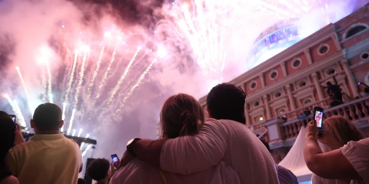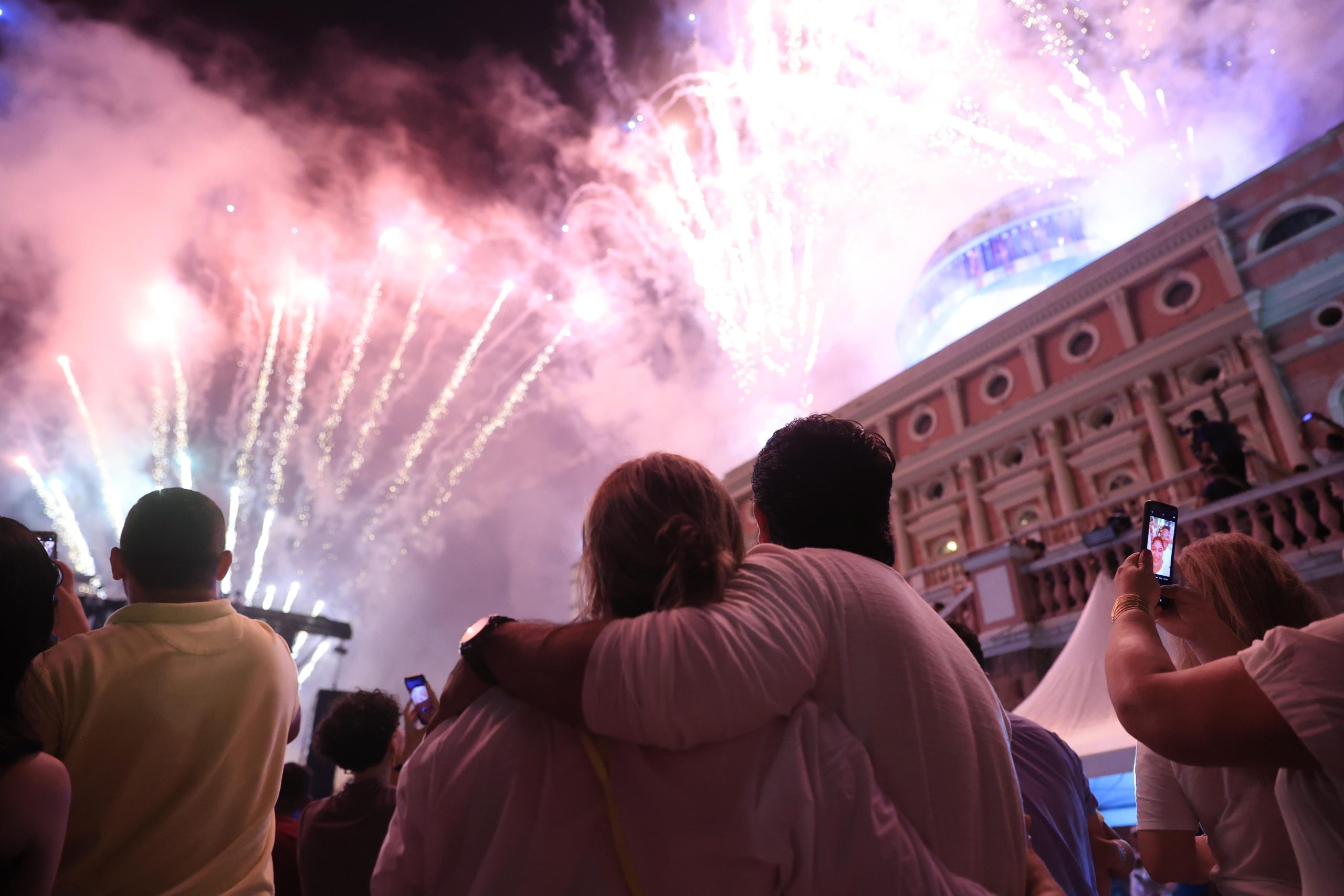 Além dos shows musicais, os 10 minutos de show pirotécnico no Teatro Amazonas com fogos de artifício com ruído reduzido e baixo impacto ambiental foram um show à parte, levando o público ao delírio exatamente na virada do ano, com os bumbás Caprichoso e Garantido no palco.