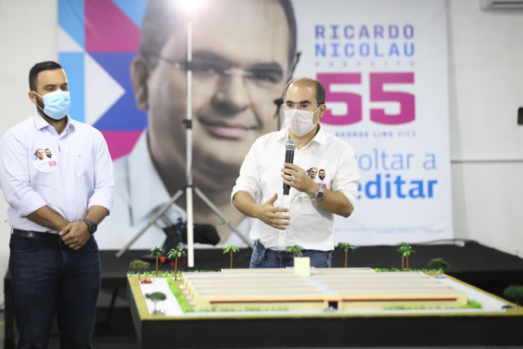 “Os adversários dizem que 180 dias é pouco tempo para construir um hospital. Mas pra quem está na fila há anos esperando por uma cirurgia, 180 dias é muito tempo. Vamos trabalhar a partir do primeiro dia de mandato para entregar o hospital que vai cumprir um papel importante para ajudar as pessoas da nossa cidade a ter uma saúde mais digna”, afirmou Ricardo Nicolau, ao lado do seu vice, o médico uro-oncologista Dr. George Lins (PP).