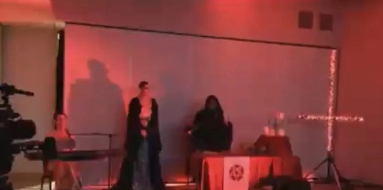 A reportagem foi interrompida por imagens de um homem vestido com uma túnica preta dizendo: ‘Salve, Satanás’.