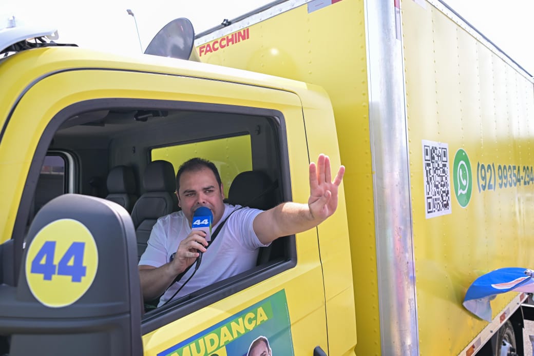 O dia de Roberto Cidade começou visitando a Bola do Eldorado, onde uma equipe de mobilização balançava bandeiras do 44. Depois, ele seguiu para a Rua 7, no Alvorada, e de lá para a Avenida Pedro Teixeira, em frente à praça de alimentação do bairro Dom Pedro. Ele também foi à avenida Brasil, na Compensa, agradecer ao empenho de outra equipe de campanha.