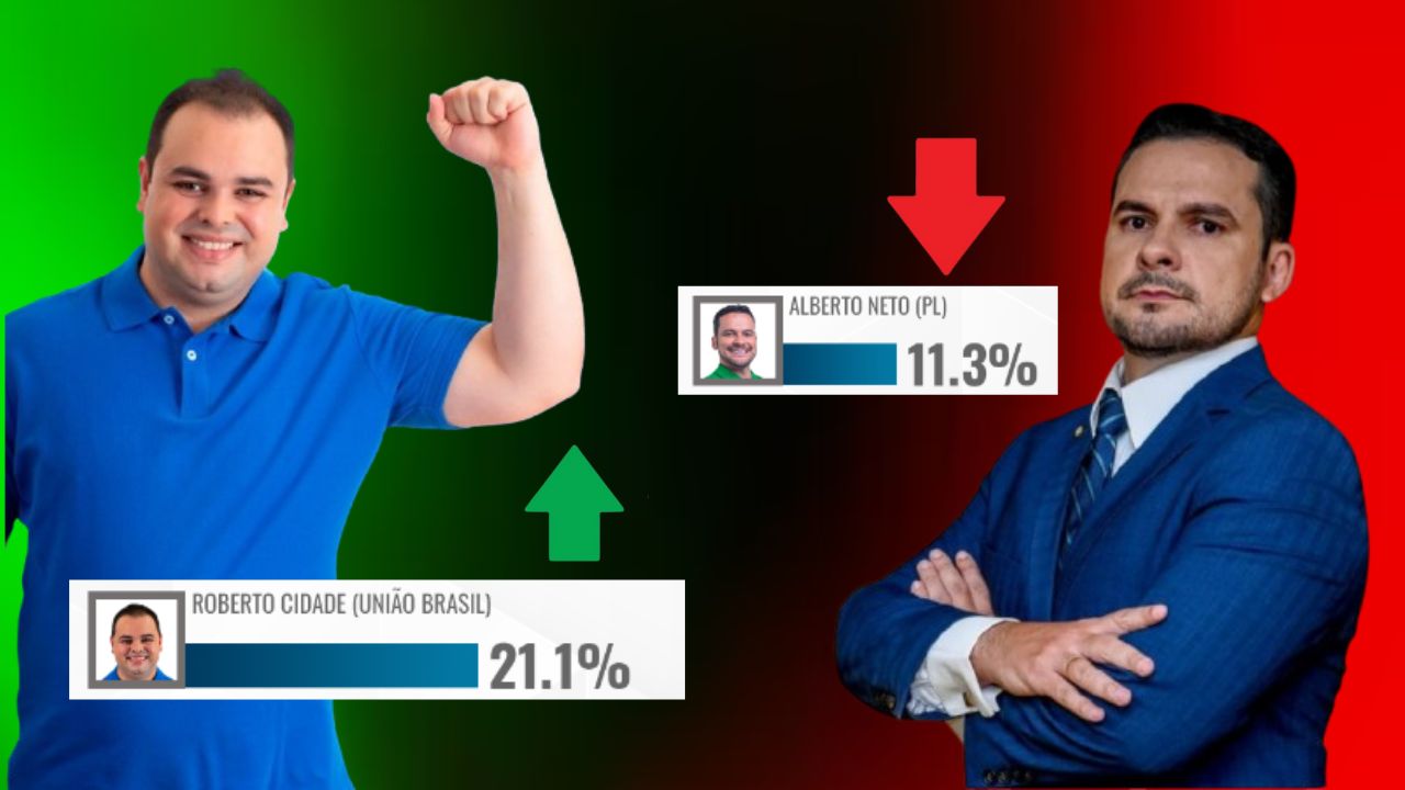 POLÍTICA – De acordo com a pesquisa do Instituto Pontual, divulgada na sexta-feira (13), Roberto Cidade (União Brasil), tem quase o dobro da preferência do eleitor que o deputado federal Alberto Neto (PL), na corrida pela prefeitura de Manaus neste ano de 2024.