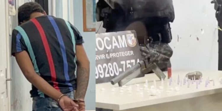 Ele foi pego com balança de precisão, maconha, supinos de cocaína e a arma de fabricação caseira.