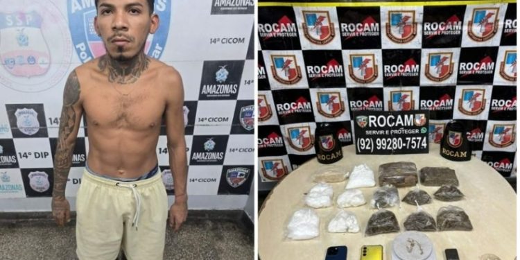 A detenção dele ocorreu nesta sexta-feira (26), na rua Vieira Dias, no Armando Mendes, zona leste de Manaus. MK estava com cocaína, maconha e oxi.