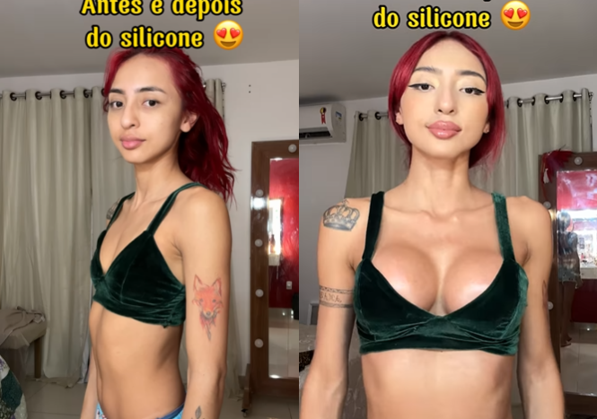 Ruivinha também resolveu criticar quem disse que o resultado não era “natural” e explicou que não queria nada pequeno. “Se fosse pra ficar natural eu nem colocava pai, meu bezerro que tá amando”.