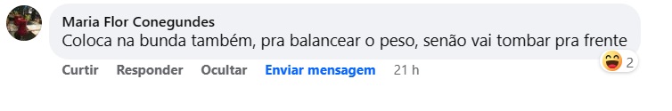 Outro mandou ela colocar silicone no traseiro para “balancear o peso”.