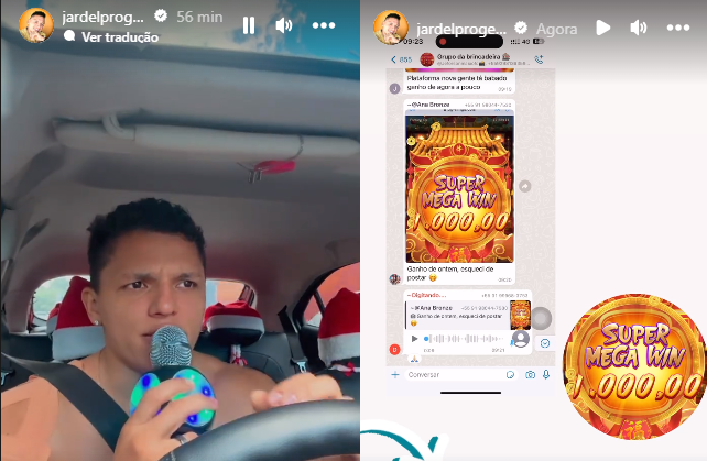 Jardel, mesmo assim, continua indicando os jogos e até possui grupo no Whatsapp onde diz que vai sortear seguidores para não pagar a taxa. “Você não precisa pagar nada pra participar (…) Mas eu sempre falo, plataforma é jogo de azar, você pode ganhar ou perder”, avisa ele.