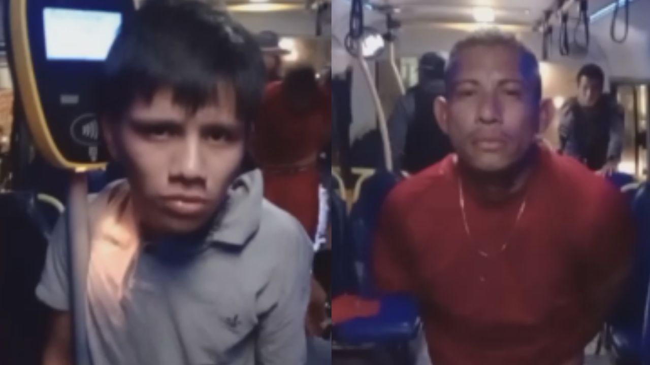 Um vídeo compartilhado em grupos de WhatsApp mostra a dupla detida pela PM no micro-ônibus.