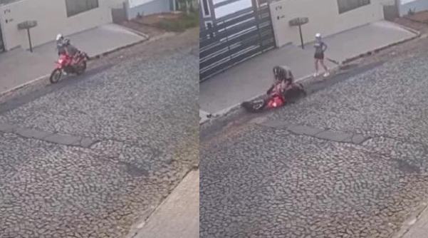 Um vídeo mostra o momento da ação. A mulher estava caminhando numa rua do bairro quando ele tenta passar a mão nela, se desequilibra e depois cai. A vítima estava voltando da academia.