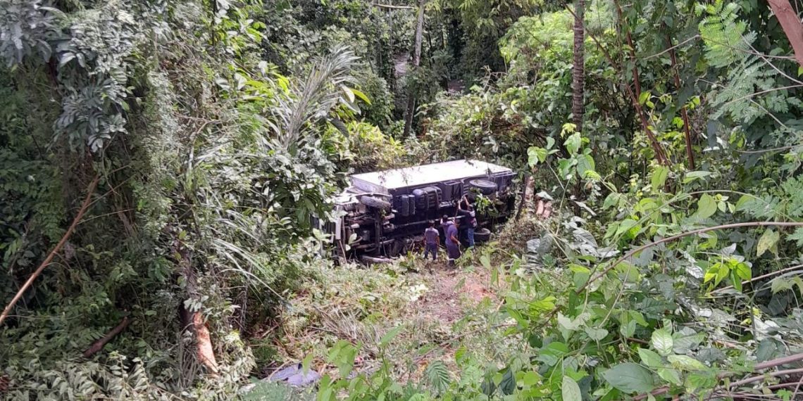 MANAUS (AM) – Neste sábado (18), um caminhão acabou caindo em uma área de mata após se movimentar sozinho na avenida Autaz Mirim, na zona leste de Manaus. O veículo estava estacionado em um espaço destinado a caminhões, nas proximidades de um posto de combustíveis.