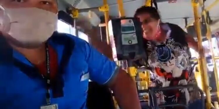 DISTRITO FEDERAL | Na tarde desta quarta-feira (24), uma passageira foi filmada agredindo um cobrador de ônibus, após o profissional sugerir a ela que colocasse o objeto de proteção para utilizar o coletivo.