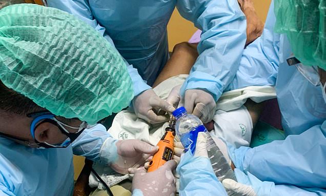 O paciente foi levado ao hospital, onde os médicos tiveram que usar um cortador elétrico para serrar a fechadura de metal. Os profissionais colocaram uma fina folha de metal entre a fechadura e a pele dele para evitar cortes no pênis.
