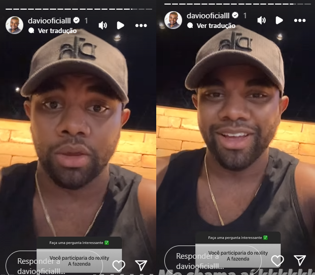 Davi ainda disse que “o pau vai quebrar” caso ele participe do game da Record TV. “Bora! Partiu, Fazenda. Alô, me chama aí”, declarou.