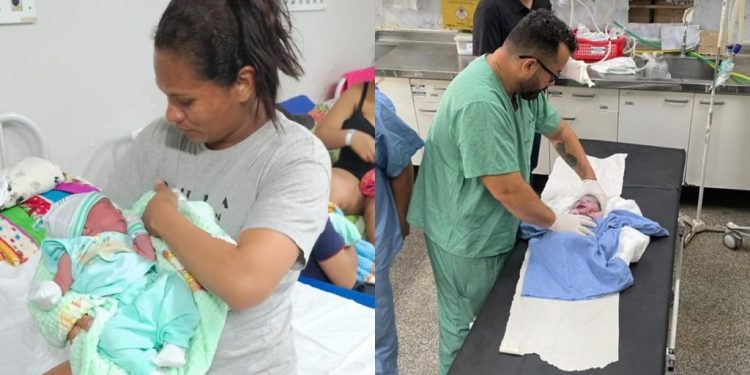 MANAUS (AM) – A manhã de sábado (11) teve um desfecho surpreendente para a dona de casa Deuzirene Pinheiro da Silva, de 39 anos. A caminho da maternidade, a gestante não conseguiu chegar a tempo à unidade e precisou realizar o parto dentro do próprio veículo, estacionado às pressas em frente ao Hospital e Pronto-Socorro (HPS) Dr. Platão Bezerra de Araújo, unidade gerenciada pela Secretaria de Estado de Saúde (SES-AM).