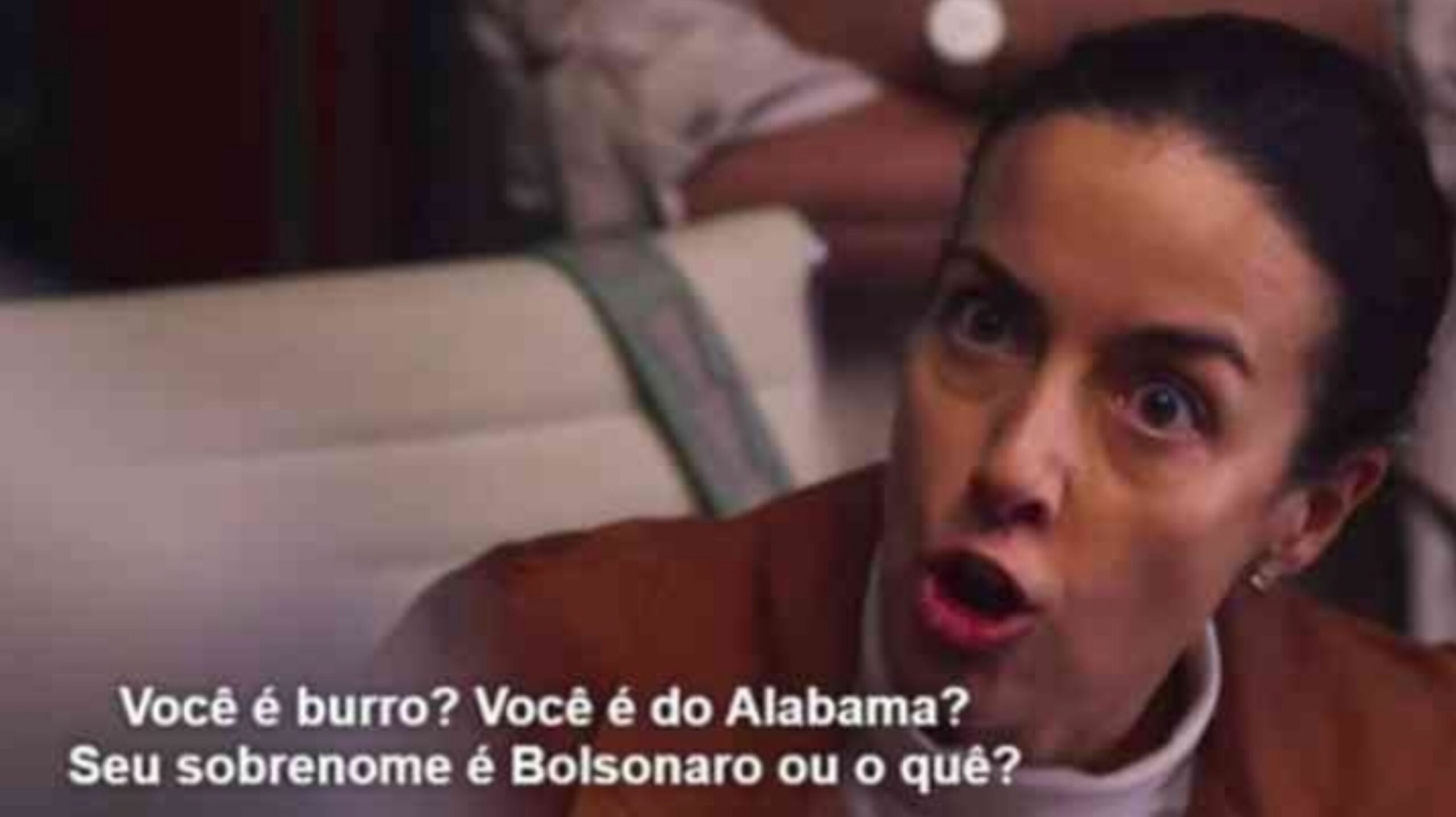 “Cale a boca! Você é burro? você é do alabama? seu sobrenome é bolsonaro ou o quê?”, grita a personagem Paulina de la Mora interpretada pela atriz Cecília Suarez, durante uma discussão com o personagem Diego Olivera, interpretado pelo ator Juan Pablo Medina.