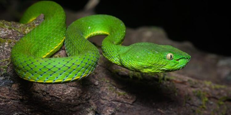 DISTRITO FEDERAL | A serpente Trimeresurus vogeli, conhecida como víbora-verde-de-vogel, foi uma das 16 cobras resgatadas no Distrito Federal, em uma investigação que busca descobrir a origem da naja que picou Pedro Henrique Santos Krambeck Lehmkul, de 22 anos.