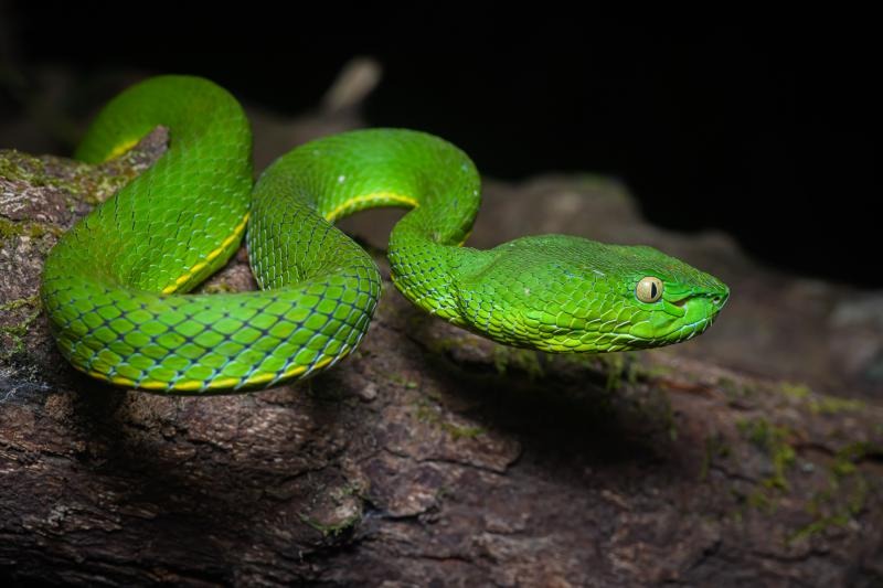 DISTRITO FEDERAL | A serpente Trimeresurus vogeli, conhecida como víbora-verde-de-vogel, foi uma das 16 cobras resgatadas no Distrito Federal, em uma investigação que busca descobrir a origem da naja que picou Pedro Henrique Santos Krambeck Lehmkul, de 22 anos.