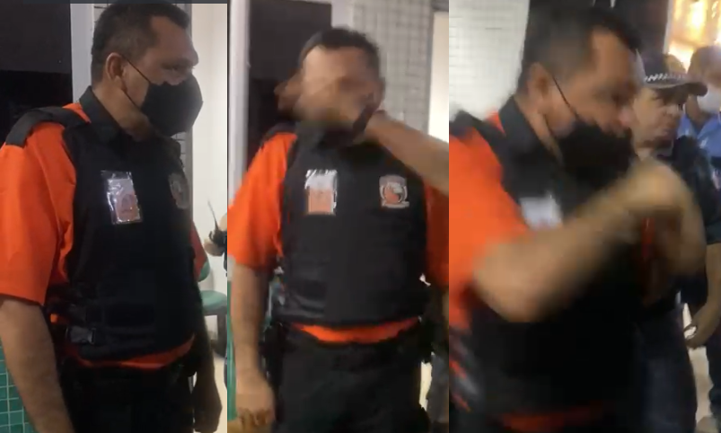O fato teria ocorrido na noite de domingo (27) e as imagens mostram familiares de um paciente exaltados no local até o momento em que uma mulher dá um tapa no vigilante e ele revida com socos. Uma outra pessoa que filma também aparenta levar um tapa e deixa o celular cair no chão.