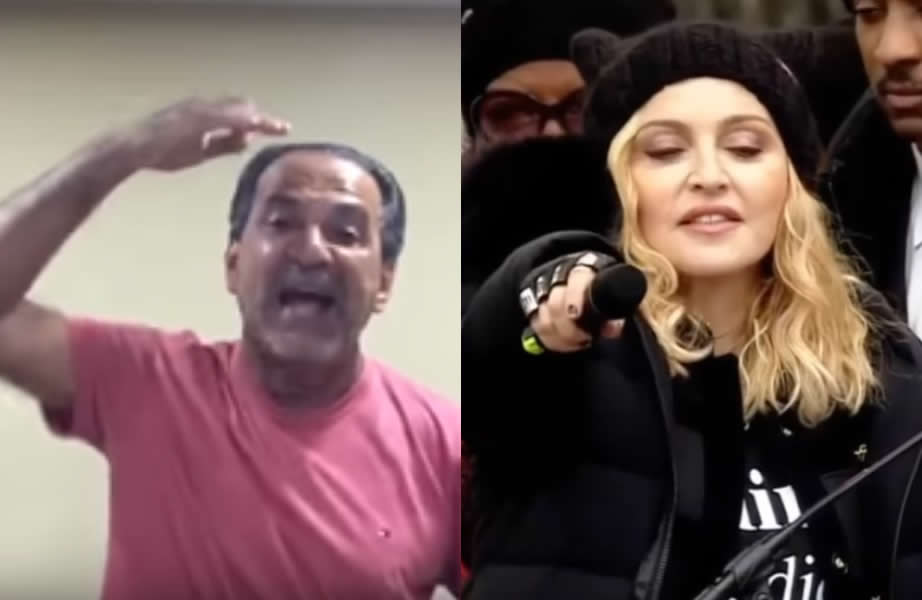 “Vocês vão ver o que essa inescrupulosa disse na Marcha das Mulheres contra o novo presidente dos Estados Unidos”, começou Malafaia, mostrando Madonna cantando ‘Donald Trump, vai chupar um pau!’. “A mídia brasileira escondeu isso. Tudo pra esses esquerdopatas é liberdade de expressão. Quando alguém da direita, eles descem o pau. Essa baixaria dessa mulher não saiu em nenhum jornal brasileiro!” Ela tá brava ela