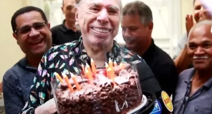 Sorridente e vestindo pijama, o ‘Homem do Baú’ foi calorosamente recebido no local, acenando e agradecendo aos fãs que entoavam “parabéns para você”. Ele estava acompanhado de uma de suas filhas, Cinthia Abravanel.