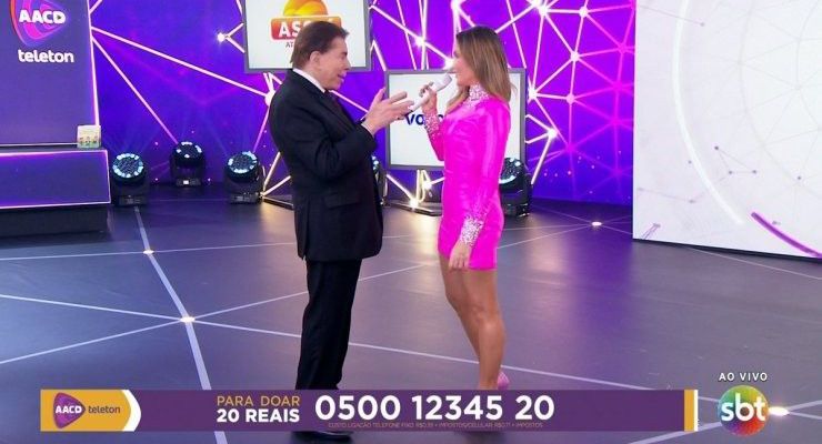 Claudia Leitte esteve no palco do Teleton e, depois de apresentar-se, pediu para dar um abraço em Silvio, de quem disse ser fã. Foi então que o apresentador reagiu de forma inesperada. “Não, esse negócio de eu ficar dando abraços me excita e eu não posso ficar excitado”, disse.