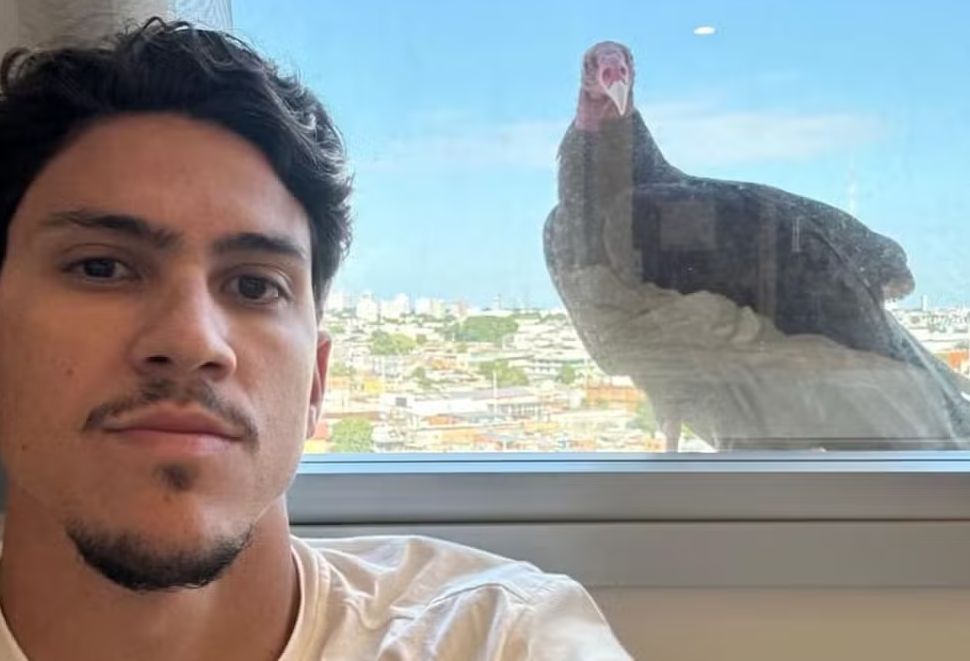 MANAUS (AM) – Sinal de vitória? Ninguém sabe, mas o atacante do Flamengo, Pedro, acordou nesta quarta-feira (17) com a presença ilustre de um urubu, mascote do clube, na janela do quarto do hotel, em Manaus. O time enfrenta o Audax-RJ na Arena da Amazônia, hoje.