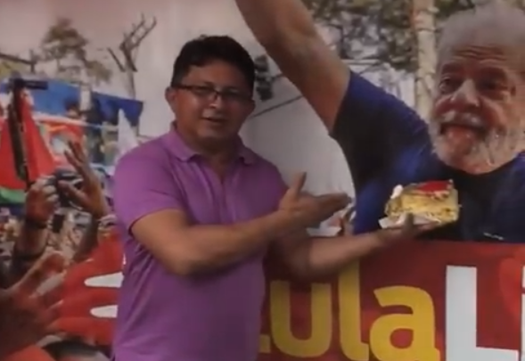 “O PT do Amazonas também comemora os 39 anos e o primeiro pedaço vai para o nosso presidente de honra. Homenagem ao ‘Lula Livre’, ao nosso presidente Lula”, disse o deputado petista.