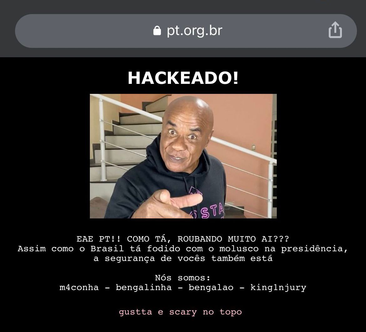 BRASIL – Uma tela preta com a imagem do ex-ator pornô Kid Bengala passou a ser exibida no site oficial do Partido dos Trabalhadores (PT), que sofreu um ataque hacker na madrugada deste domingo (29). A página é usada para divulgar informações oficiais do partido e do governo Lula.