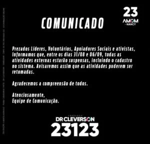 O candidato a vereador usou o Instagram para comemorar as medalhas conquistadas pelos atletas brasileiros, nas Paralimpíadas de Paris, e também comunicou que as atividades externas da campanha com líderes comunitários e apoiadores estão suspensas até o dia 6 de setembro. O comunicado estava com seu número de candidato.