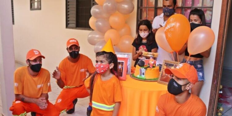 PARANÁ | Na última quarta-feira, 9, a pequena Maria Samilly completou seis anos de idade e para celebrar o dia, ela ganhou uma festa temática da profissão que deseja seguir quando chegar na fase adulta: gari. Para comemorar, a criança recebeu alguns garis da cidade em sua festa.