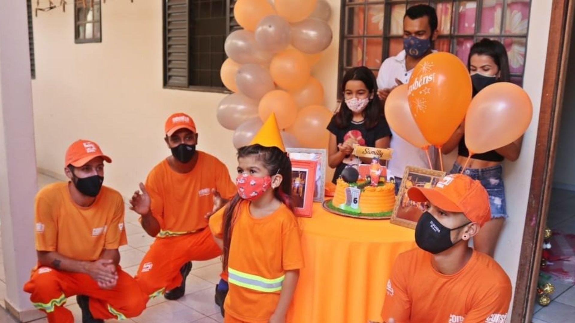 PARANÁ | Na última quarta-feira, 9, a pequena Maria Samilly completou seis anos de idade e para celebrar o dia, ela ganhou uma festa temática da profissão que deseja seguir quando chegar na fase adulta: gari. Para comemorar, a criança recebeu alguns garis da cidade em sua festa.