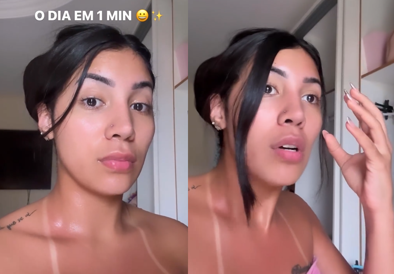 A jovem gravou um storie revelando que sempre esquece de pegar a toalha quando vai tomar banho e por isso teme que algum morador já tenha a visto nua.